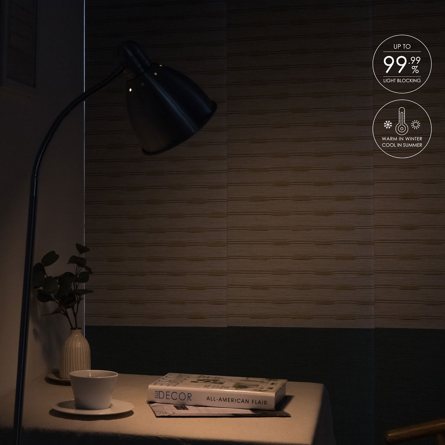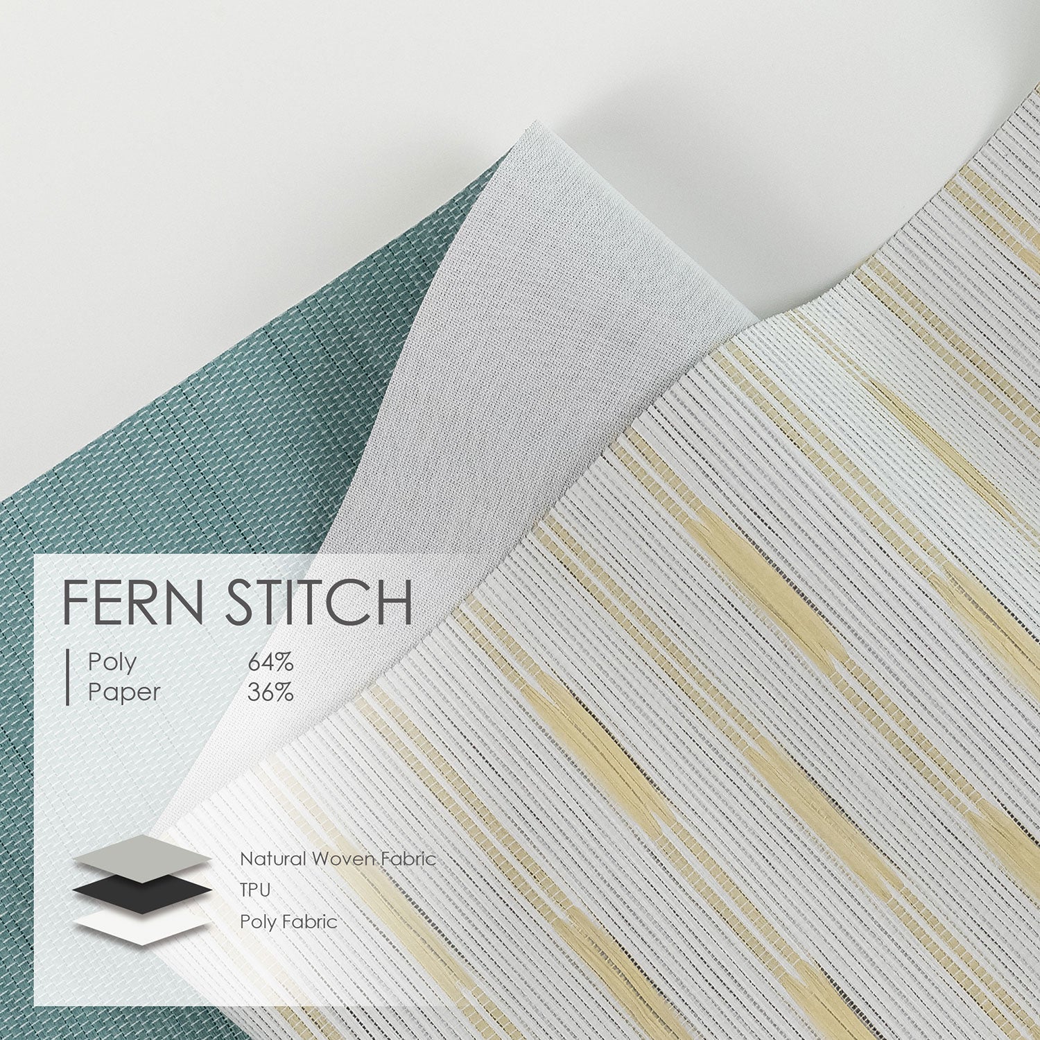 Designed for durability and strength, Fern Stitch woven blackout blinds feature a contrasting color palette that refreshes your home decor. The back side of each panel features a white fabric backing.
