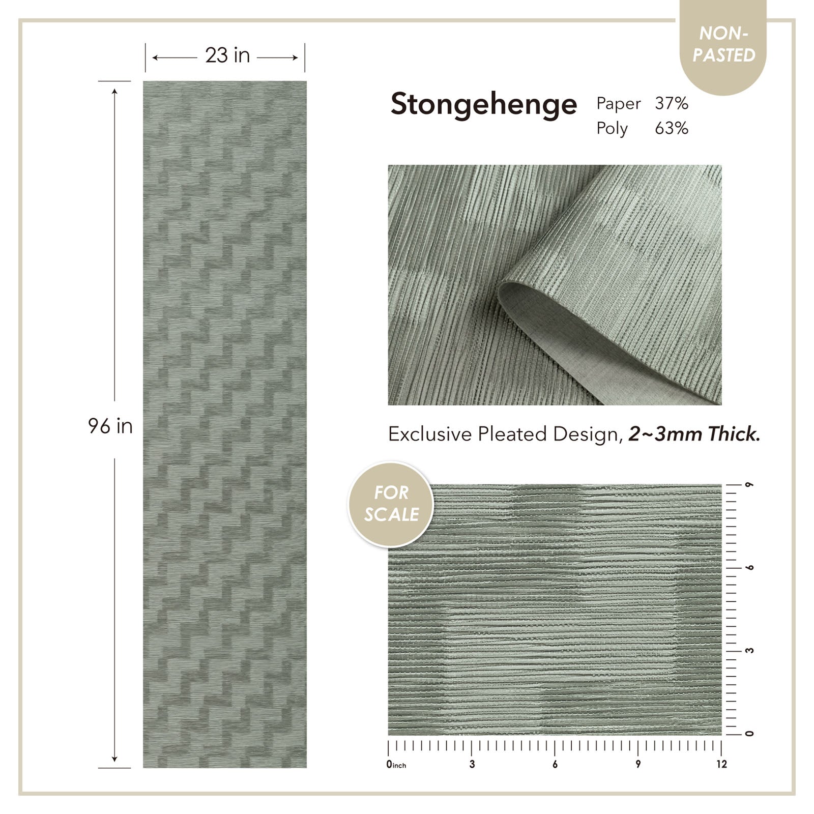 - Material: 63% Paper + 37% Poly natural woven blended. All fabrics are non-pasted and require to apply adhesive by yourself.