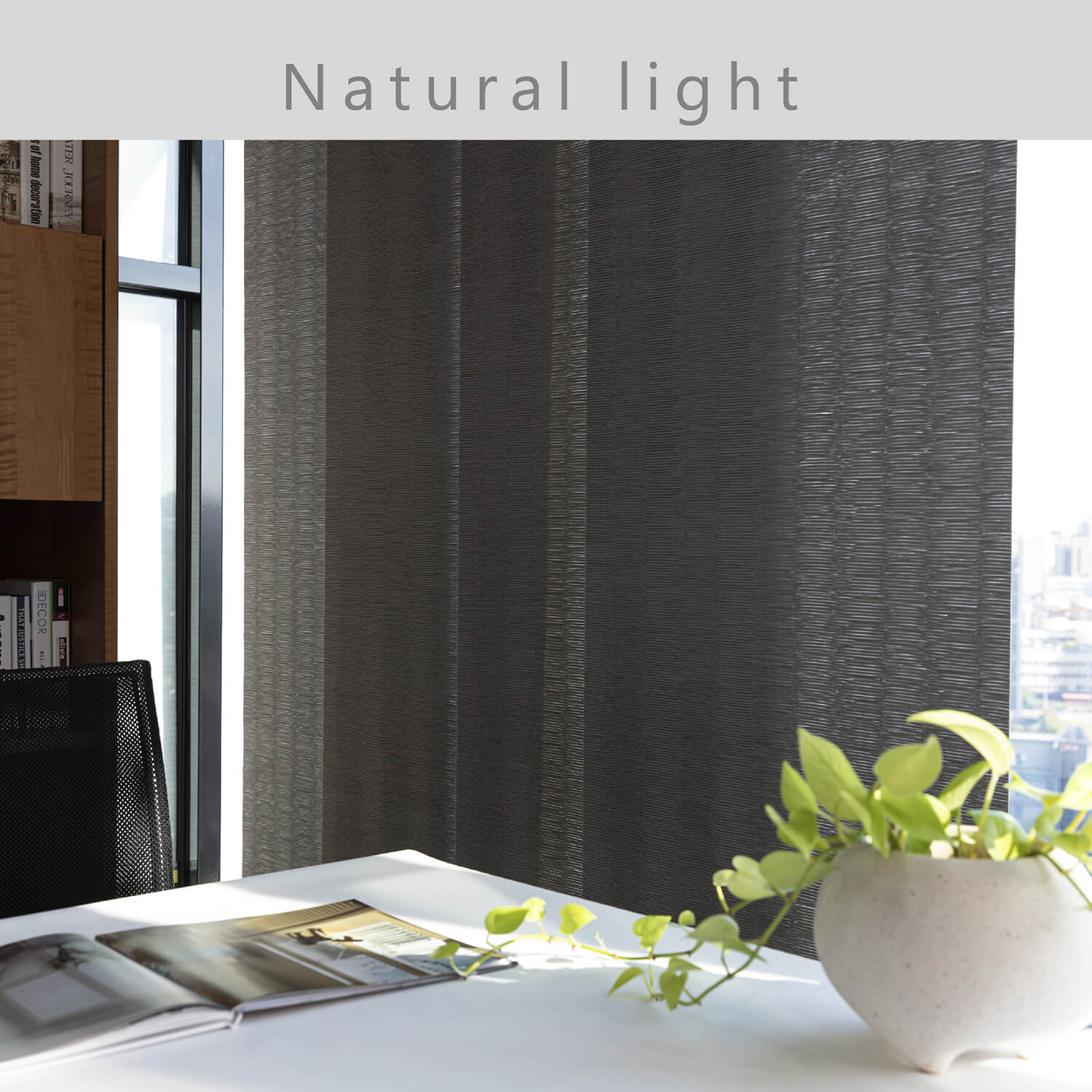 - Natural woven pleated fabric. The color of the front and the back side of the panel are different.