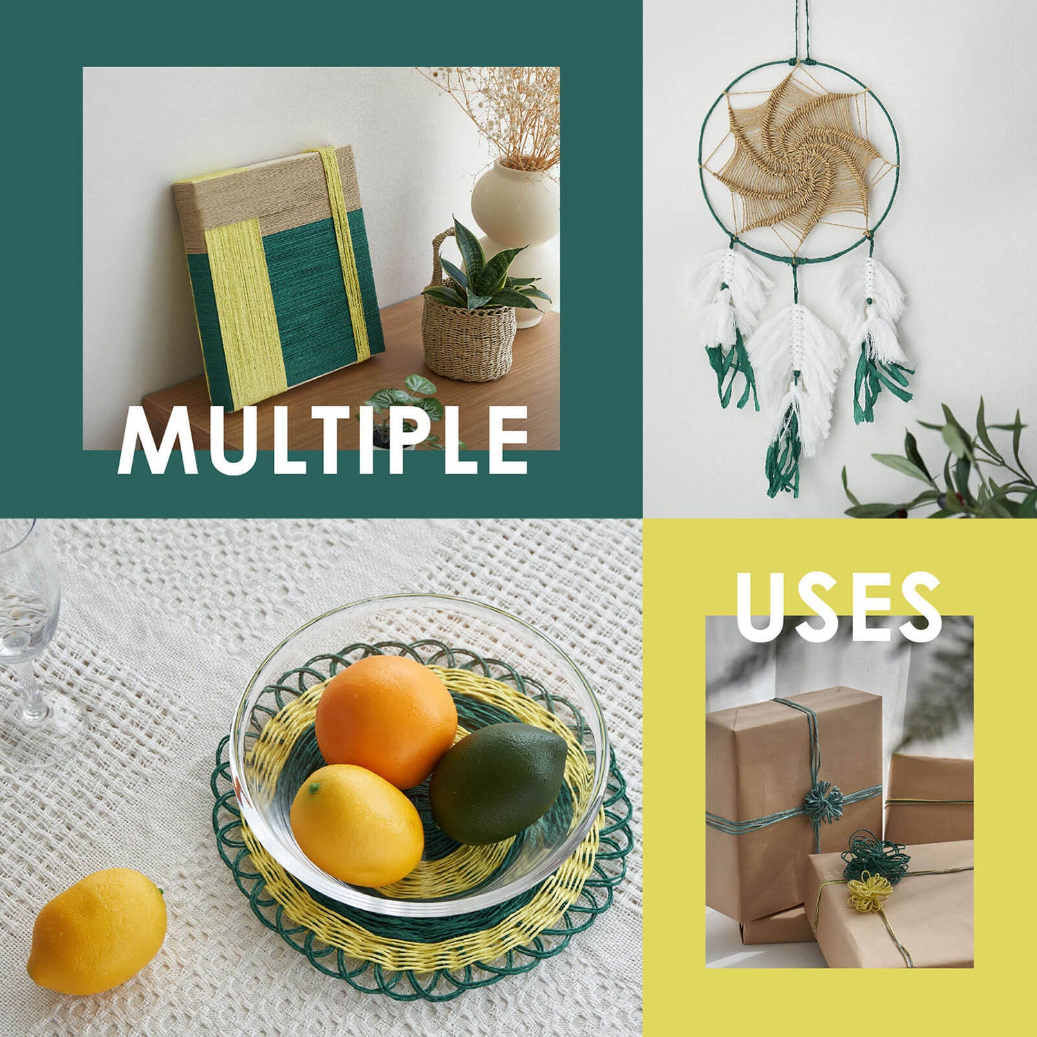 With its strong durability, the raffia ribbon can be used not only for home decoration, weaving crafts, and gift packaging but also as a substitute for hemp rope or satin ribbon for hanging decorative accessories. Fresh alternatives to the macrame cords or jute twines.